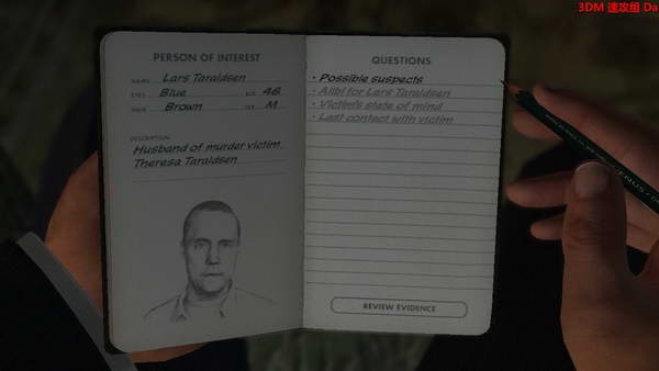 死者衣领上的标签,轮胎痕迹,鞋印!收集完之后。去到电话旁边!会跑来一个目击人!