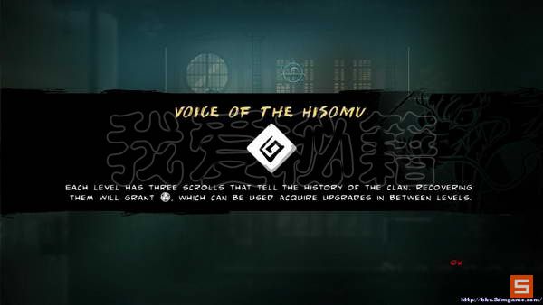 在第一个隔板门左边的房间,你可以捡取到隐藏的卷轴。按E捡取。每个关卡如果你收集齐全所有的隐藏卷轴,可以得到额外的忍者点数加成,这些点数可以用于提升你的忍者各项能量