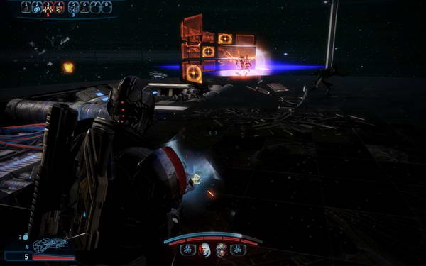 3:这个眼睛男一直想和Shepard单挑,这家伙也不是很难;大厅两边都有凹下去的地方可以掩护,一旦眼镜男召唤敌人,利用眼睛、掩护杀之。