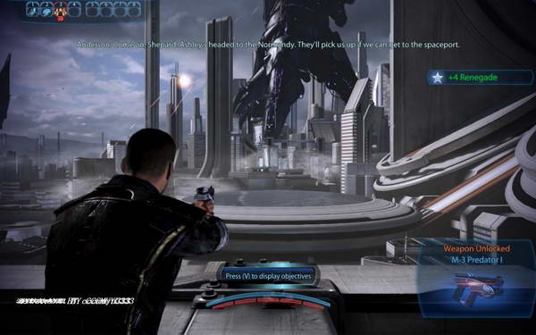 3:使用信号接发器联系上飞船,Shepard登上飞船。anderson(安德森)决定留下:我哪儿都不去,这里需要我;Shepard,你有你自己必须要做的事,就这样吧。