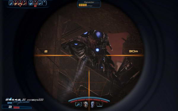 2:由于已经升级了武器,这里的敌人打起来并不难,注意掩护。这里有种新型的敌人:Havester,这里地形狭小,而且掩护很多;打起这种敌人只要注意掩护就是任你摆布的。