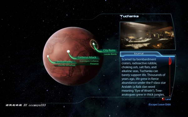 Shepard就出了斯族将军的儿子,而这个VITUS也带来了一个令人震惊的消息;原来在tuchanka星上有一颗以前他们遗留下来的超级炸弹,而VITUS的任务是阻止塞普鲁斯组织引爆这颗超级炸弹。Shepard一听就火了,现在正是搞团结的时候,你们斯族这颗超级炸弹一炸,克族的这颗母星还要不要了,还怎么团结?Shepard果断前去擦屁股。