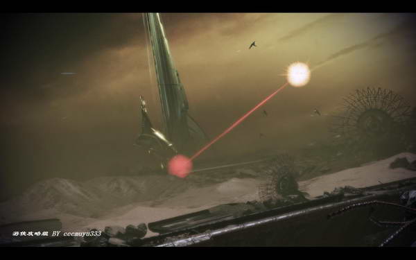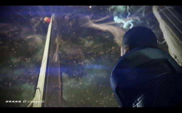 1:治愈神殿前面被巨型收割者所挡,所以Shepard计划从地面接近神殿,并让斯族在空中掩护他们。