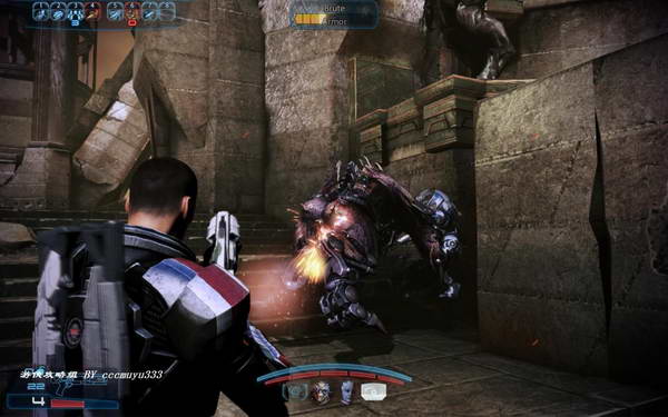 3:神殿门前会有很多的敌人和好几个巨兽,在这里既要避开收割者的激光,又要在这里打败这些巨兽。这里注意掩护和绕路,注意按3键急救;巨兽最好击中火力一个个杀,近身使用升级之后的散弹枪很给力。