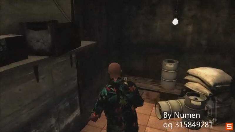 用爬的,到这里后,子弹时间干掉最近的2人,之后打爆房间前的气罐