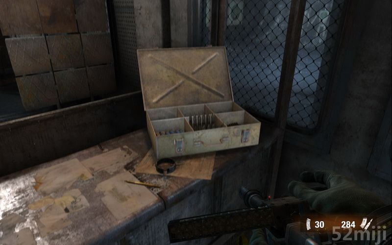 拿到军用子弹后去右侧木板拿取武器,在拿取到武器后第三个武器选项可以增加配件(消音等)
