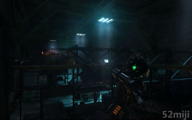 到达宿舍后首先从最右敌人开始逐一解决,打开大门后关闭电闸开关,从右侧阴暗处前进等待吊机的两名敌人把灯关闭