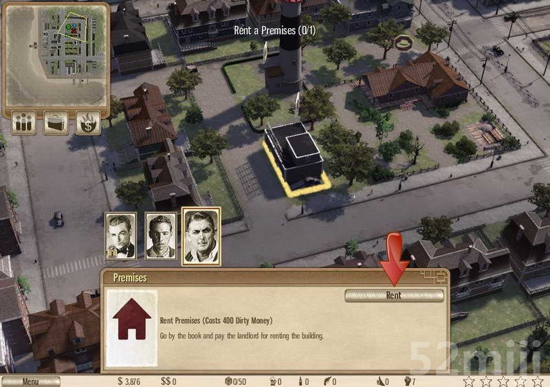 首先雇佣DOC,之后点击一个建筑物RENT来租用该建筑物。这里玩家需要注意的是,一般情况下,大部分的建筑物的租用都需要黑钱。而住宅和地皮的购买则是需要合法钱