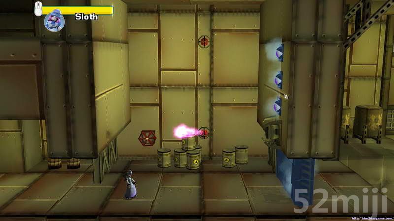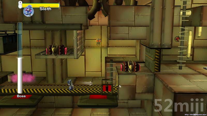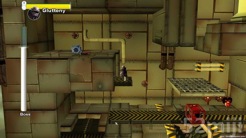 来到最后的BOSS战面前,这里注意玩家必须站在下图所示外围等待魔法火焰发射来,然后使用PRIDE反击回去;否则会被突然开启的上面三个压力锤压死