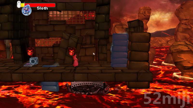 这里则是一个典型的操控解密。将水晶块释放SLOTH的魔法让其漂浮,然后进入左边的两个障碍之中开启机关;然后取消魔法让水晶块下落开启最右边两个机关;从而结束本关