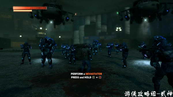 到达目标地消灭超级士兵-学会毁灭大招,按屏幕指示按键-释放后继续吸收敌人积累能量-利用大招消灭嗜血者和超级士兵