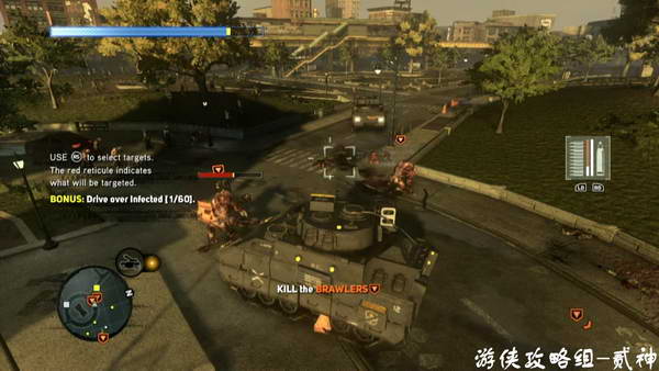 利用触手技能消灭直升机-消灭坦克。吸收目标