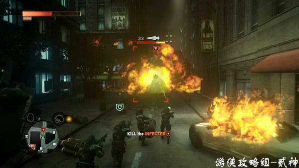 到达目的地不触发警报-跟随指挥官,路上上拾取各种武器消灭敌人,躲避触手怪的投掷-消灭infected 感染者-消灭几个触手怪,攻击科学家过关