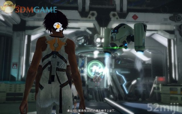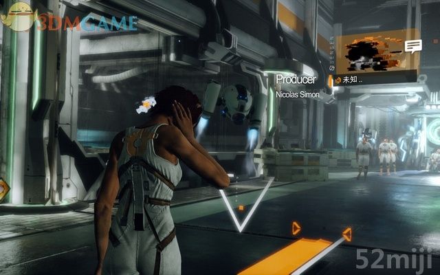 检查机器人飞过来,用鼠标晃动一下,环顾四周。沿着地上的橙线跌撞地走过去,在大厅里看到很多人在排队,最前的人坐在椅子上接受最后的记忆清除。此时有陌生人连线她的大脑,嘱咐她不要接受清除程序。不久那台记忆清除设备被黑掉,妮琳按陌生人的提示往左边看,一道厚重的铁门升起一道缝隙,于是走过去从门底爬到另一边。