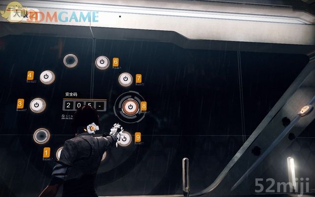 用密码2058开门进走廊,在左侧的第三根灯柱上找到记忆虫子(10/10)。两侧走廊都有两只哨警机器人在巡逻,避开它们进到中间的屋子拾取记忆碎片(6/6)。