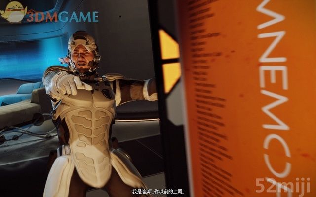 开门下楼梯进到酒吧区,在楼梯右侧的墙壁找到记忆虫子(5/11)。往前望到崔斯奔跑的身影,开门进到休息室,左边有只哨警机器人,躲开它的视野进到走廊右边的昏暗房间,拾取记忆包(3/4)。