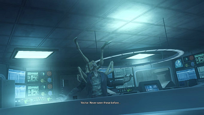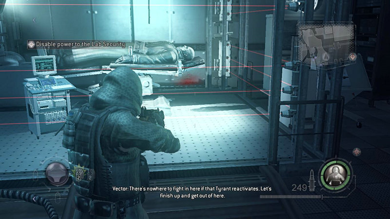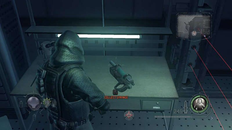启动NEMSIS的程序比较麻烦。首先你需要去房间的右边关闭红外保护激光,然后在去右侧的平台找到一个大注射器与NEMSIS互动,从中提取寄生虫