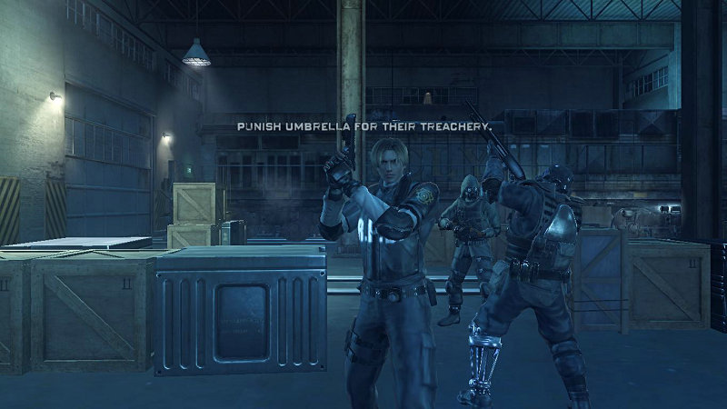 最后的决战,你和你的队伍将前去消灭与美军联合的LEON和CLARIE。这是你和你的队伍重新取得安布雷拉信任的最后机会