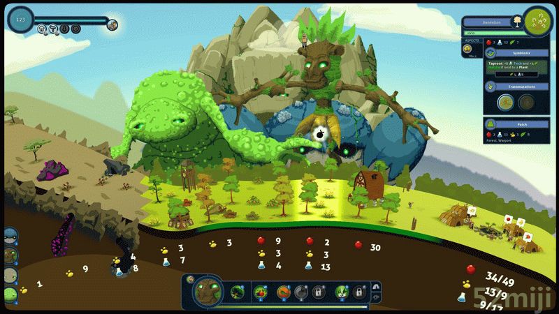 有了环境,巨人的能力才开始解锁,【沼泽】能创造“草药”和“野兽”,【海洋】能创造“植物”和“动物”,【森林】能创造“果实”,【山岭】能创造“菌类”与“矿洞”,虽然看起来似乎每个巨人的能力都大同小异,然而不同的创造物之间的交互影响也是存在的。