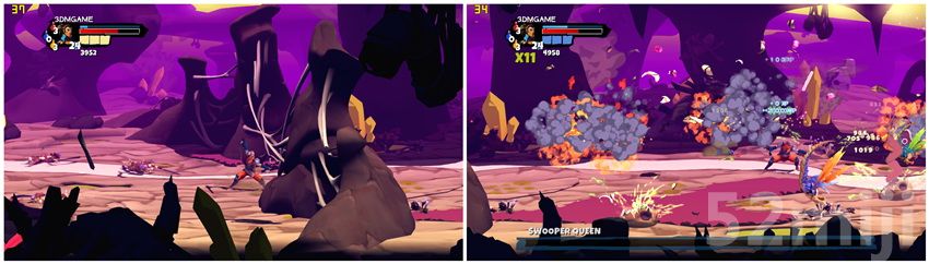 战斗分析:step1,水晶洞内有着大大小小的浓酸沼泽池,大的比较明显,小的话容易误入,所以要小心。首先要面对的就是飞蛇+女王追随者,注意躲避炸弹的时候会跌落沼泽。这时会有新的女王追随者出场,它是拿着两嗰铲子的,血比较厚,懂得使用女王追随者的所有招数。step2,格力默克大妈骑着骑行怪兽一路逃跑,可惜骑行怪兽坚持不住倒地身亡,这里可以冲过去抢一头骑行怪兽,攻击力没有坦克那么强悍,但是具备普通攻击和重力攻击两种模式,还算是挺灵活的。只是骑行怪兽一般英雄三次跌落后,它就会逃跑,不耐用就是了。可以骑着骑行怪兽一直来到沼泽(中间有台阶);step3,打破一道骨椚,解决里面的所有敌人即可。