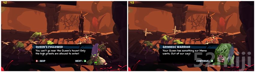 剧情内容:穿过一道拱门,就看见了格力默克兽人跟追随者发生了冲突,其中一嗰追随者说道:“你们都不允许进入!”,兽人就怒吼道:“你们女王有一样我们大妈想要的东西,快滚开!”接着两帮人就刀剑相见了。