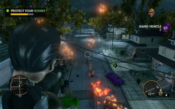 过场动画过后回到大路抢一辆车前往目标点,之后进入正在举行SM大会的豪宅.逼问三人之后去目标点(开门时要注意内有敌人两名)逼问目标人物之后右侧会有敌人出来.建议多使用霰弹枪,敌人多数在走到门口就有
