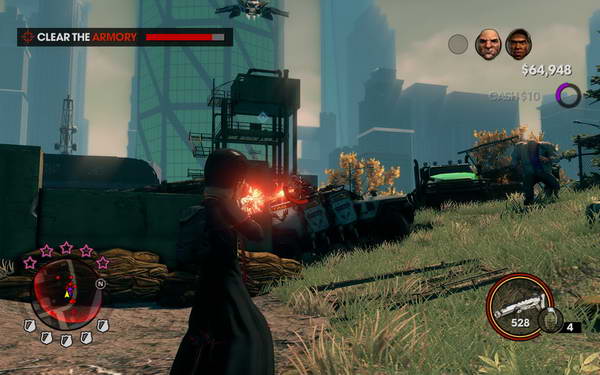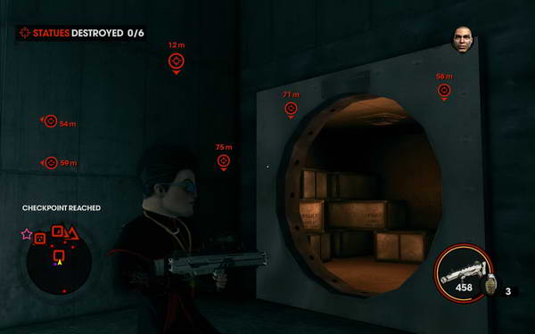 本关开始并没有太大压力.一路压制杀敌即可待目标出现按E威胁,去金库出来之后敌人会较多大约3批左右(会有一个小BOSS)此时先打掉全部目标点,完成后会出现两个拿火焰喷射器的小BOSS击杀即可