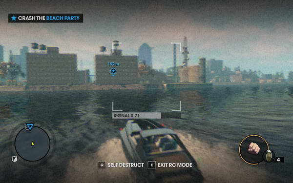 本关需要使用一个新武器来操控汽车造成车祸或者失控,首先第一个目标需要先完成撞死15个平民的任务再将其车辆弄爆即可,第二个只需开到岸上即可,第三个控制直升机撞向另外的一个直升机即可(有操控范围限制可等限制宽松了再去撞),第四个只需操控闲置的坦克大闹等目标出现就行(如果操控坦克爆炸了,可换另一辆)
