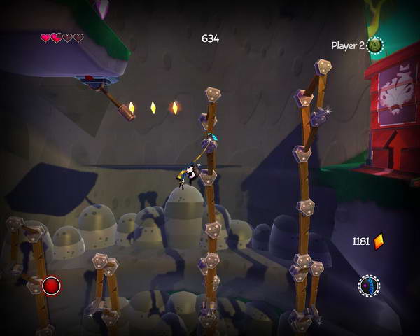 到了地面后先去把存档点打开以防万一,前方会出现新的飞行敌人(会吐火球,跳起抽一下就等它一次攻击如此反复)跳上弹床后躲过机关到对面(机关攻击处有血条奖励),通过吊桥时会出现关卡刚开始无法攻击的我猪人敌人了同时还有新的飞行敌人