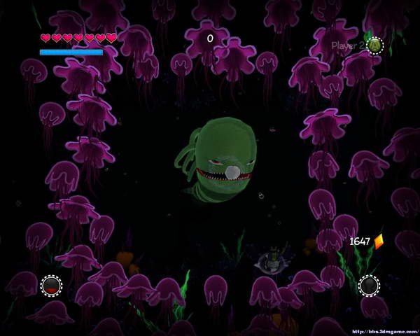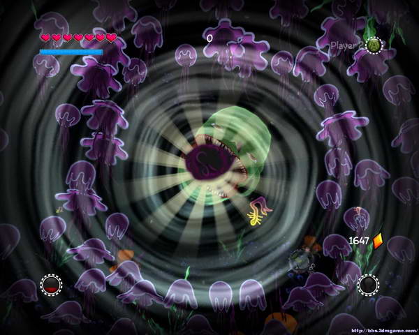 本关开始后一直往下游游到出现发光植物为止,之后往右移动会开始BOSS战