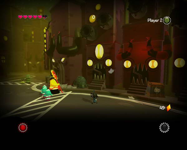 打开存档点通过车道时路上会有一定数量的蓝胖子进行阻拦.下来之后坑爹的阿姨又会出现在通过之后前方大门前会有3只蓝胖子看门同样击杀,路上解决掉一个新敌人后来到大楼攀爬到上方跳的楼上的着脚点后跳起利用滑勾继续前进,下来后会到一个叉路口往上方走会有一个红心奖励拿掉之后下来继续前进