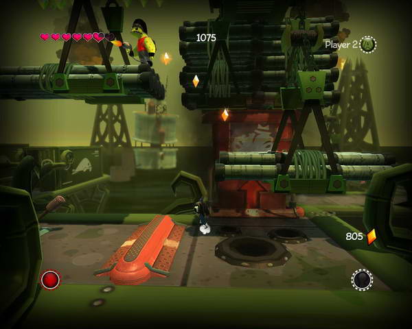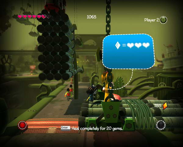 走钢管(会有一只老鼠和一个新的喷火敌人,在最左上的钢管上有红心奖励)从上方下来后到地面喷烟口打开存档点解决一个骑坐骑的新敌人后跳上钢管打开机关后下来解决敌人继续前进,再打开一个存档点上方钢管会出现一个收费加血的NPC(根据需要)解决一只老鼠后前进