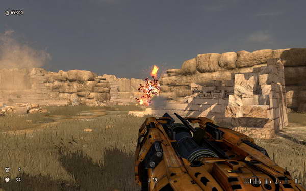 本关开始到第一个大厅后先去左边两侧两个房间开启开关(出来后会遭遇骷髅狗和更多的猴子).再去右边第一个房间开启开关出来会遇到两只骷髅狗杀死后去第二个房间从密道继续前进,下来后去左手的墙上把3个开关全数开启正面的门会打开此时里面会有大量的机枪蚂蚁全数杀死.开启房间中央的开关左侧的门会打开此时会有两名近战敌人出现击杀之,沿着路走在最后的转角会有一名远程的傻瓜敌人击杀后从左侧走.跟随坡道上去看到石球后迅速躲到左右两侧的凹槽处等石球下去后跟上此时会出现猴子