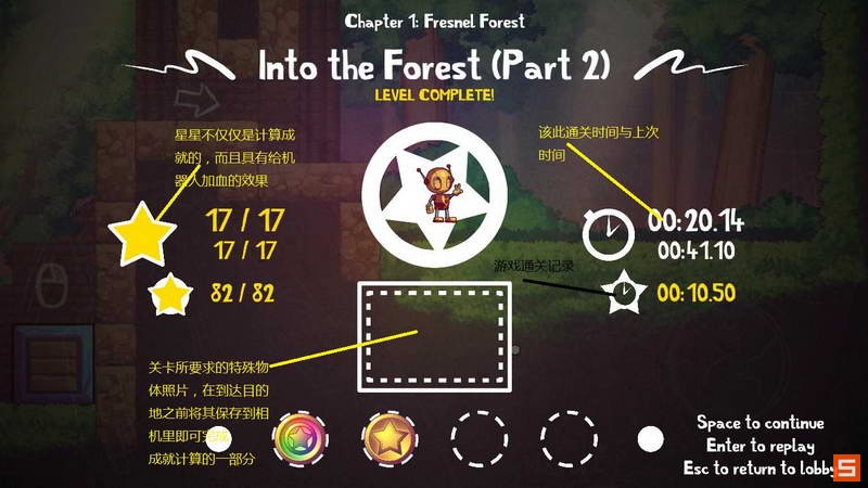 这里我额外说明一下游戏的特殊物件。每个分支的关卡都存在一些特殊物件或者特殊景色,玩家在进入目的地之前将其保存在相机之中可以完成该成就。这些特殊物品大部分没有特殊的作用,但是有其中一部分可以替代作为道具进行使用。这里我会在后面的游戏进程之中进行特殊说明