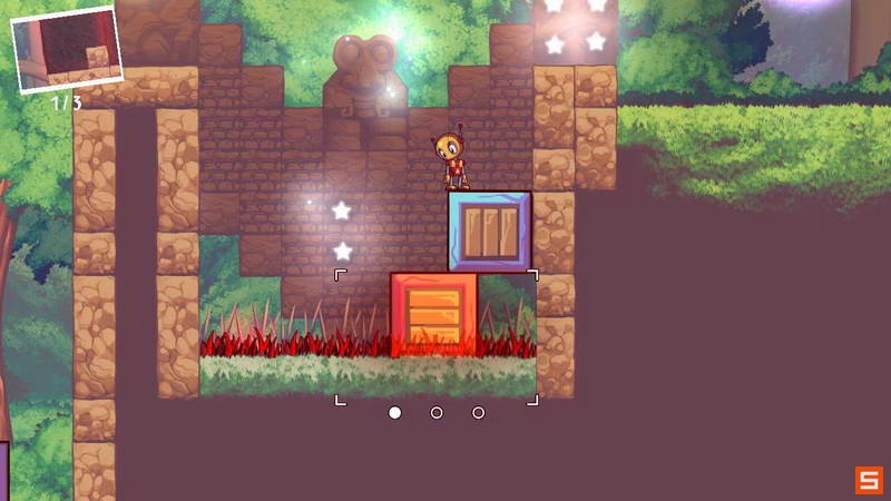 这里还要说明一下箱子的问题。箱子是所有关卡之中最常用的道具。浅红色的箱子可以用机器人推动,而深红色的只能拍照移动,不能推动
