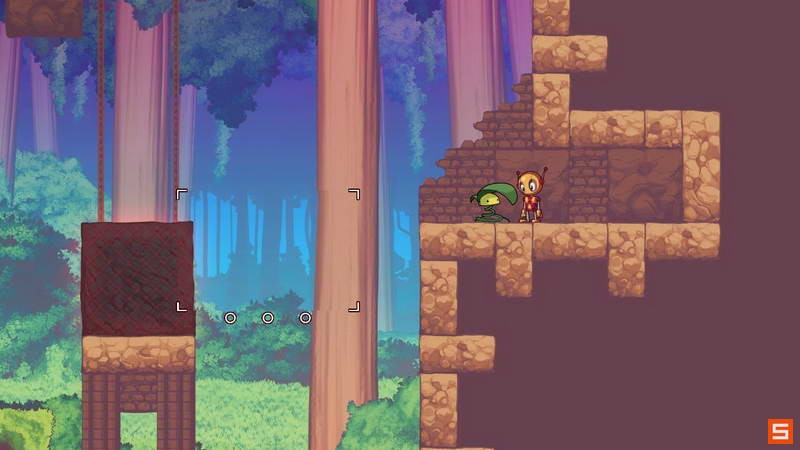 第五分支总体也相当考验微操。这里则是让玩家熟悉一个很重要的道具:弹簧草。该道具可以将机器人弹射到极高的高度,但是无法推移
