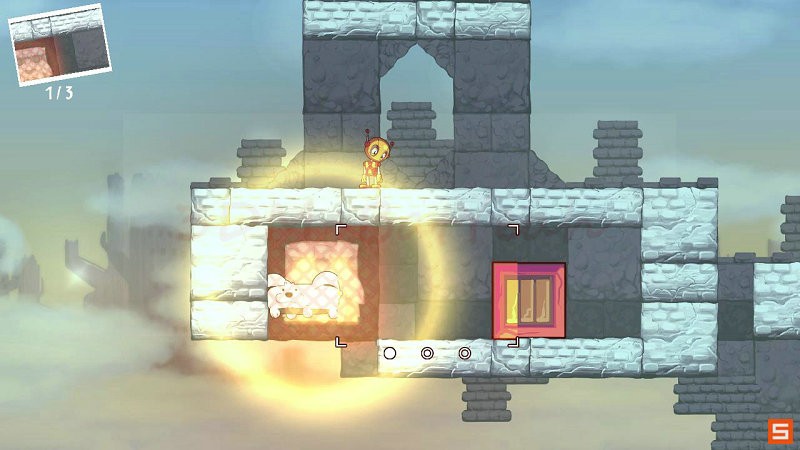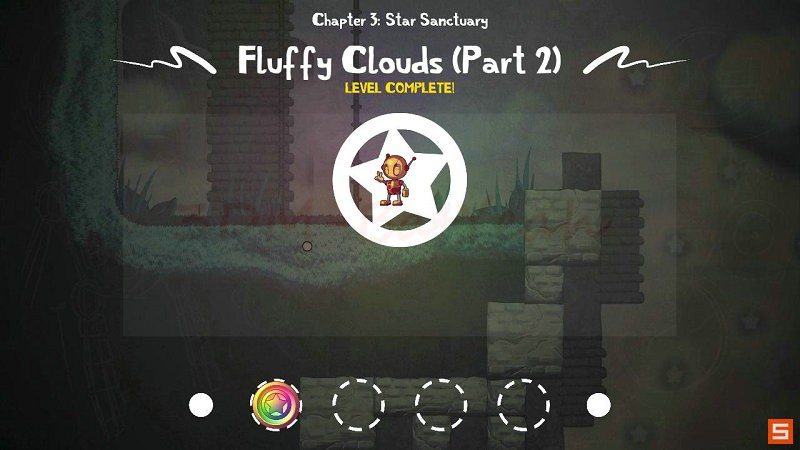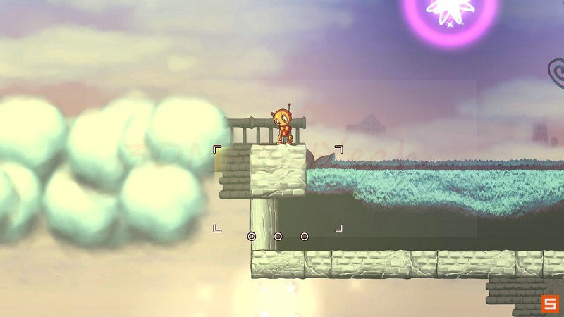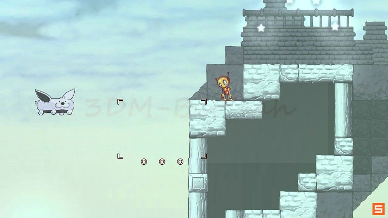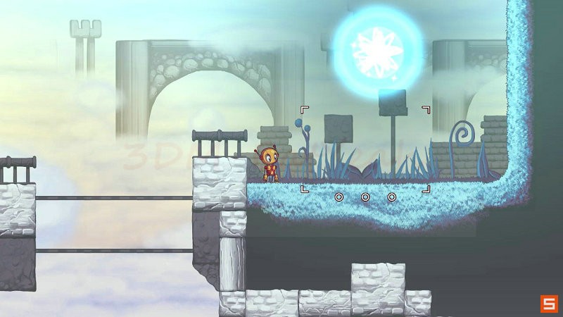 这一关需要玩家分别去两边保存好初始的虚拟云彩,然后逐步放置到中间的机关从而让下面的障碍彻底拉开,玩家趁此拍下弹簧草从而跳到上层完成本关