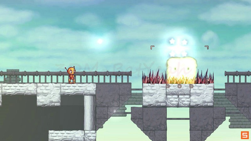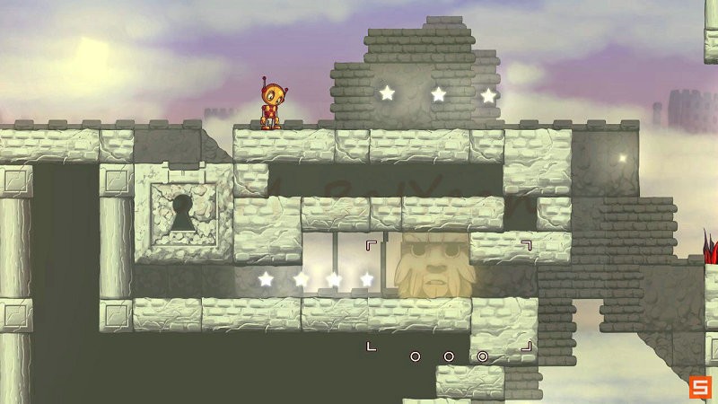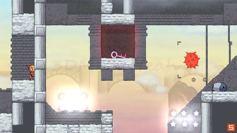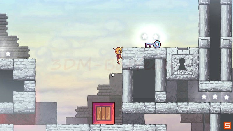 最后一关有一个小技巧,玩家无须拿去初始位置上方的钥匙。只需去右下方拿去梯子之后,放置在钥匙孔下面的机关打开机关;然后小心利用云彩越过尖刺障碍即可完成本官