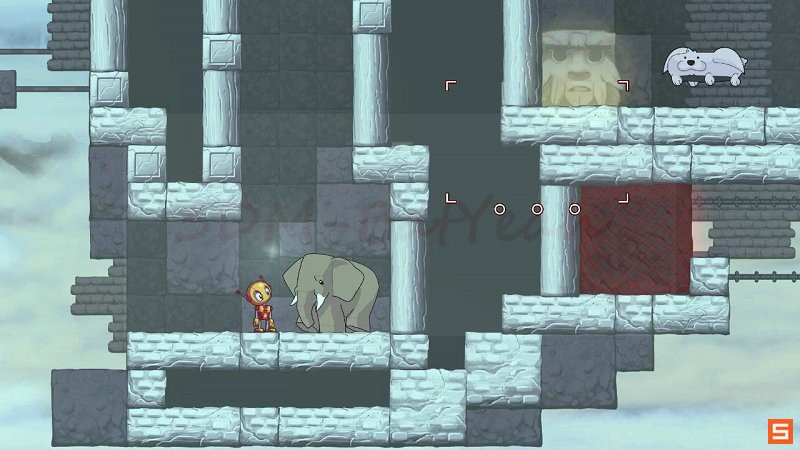 本关难度不大就是利用箱子不断的跳跃。唯一的难点在于下图的拿去钥匙的机关,需要在飞狗平台右边放置一个箱子从而让平台开启机关的时间够长,让人物得意拍下钥匙