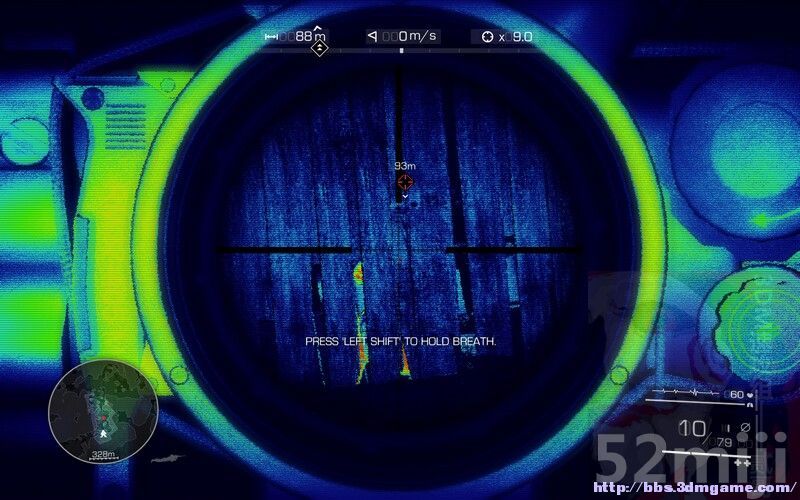 7.来到指定地点,按B开启望远镜标记敌人,根据任务提示逐一消灭敌人,合理利用子弹时间(左SHIFT,稳定呼吸,敌人移动速度会减慢)