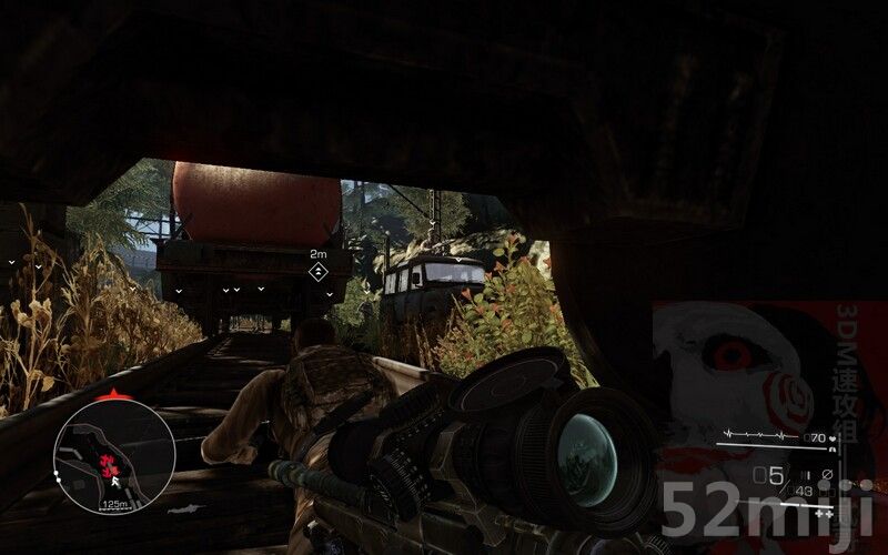 3.躲避敌人巡逻队,从火车下方匍匐前进。无声的解决车站的守卫X2。