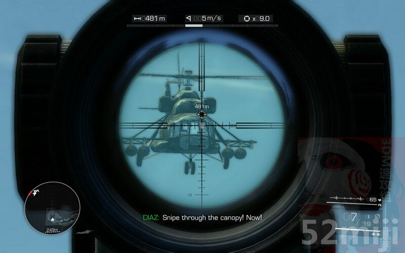 5.来到高处,剧情过后,目标驾驶直升机不断逼近,一枪将其毙命,过关。