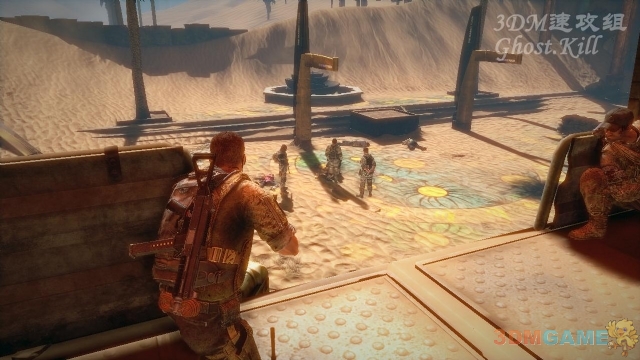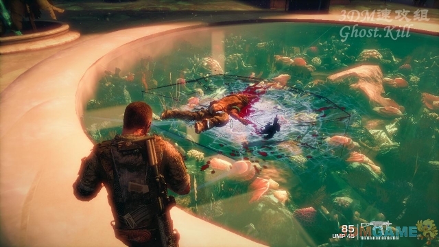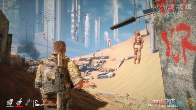 穿过一条通道来到开阔地,可以看到四处挂着尸体,也算是一道风景线了。找掩体后开始屠杀敌人。
