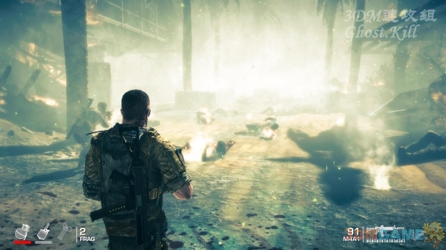 房间里四处都是早燃烧的人,继续前进遇到敌人重甲兵,直接扔手雷炸,有粘贴炸弹的话尽量用,比手雷威力强很多。也可以直接用枪扫,如果对弹药补充有自信的话。