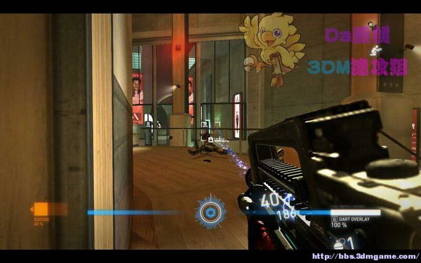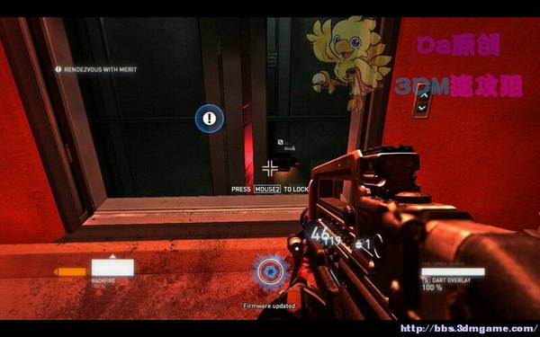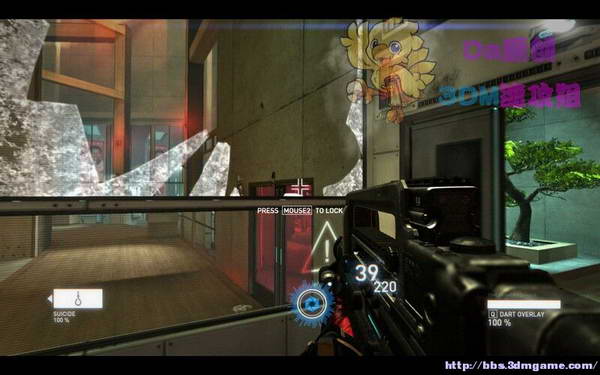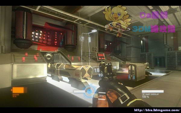 从科学家手里拿到一把追踪枪,练枪室会有弹药补给!上图,先射破红色的防御门,在按E控制门的左上角的冷气