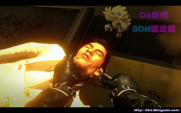 通过通风口出来,来到目标的办公室!他果断的自杀后,去到他尸体旁边按F!