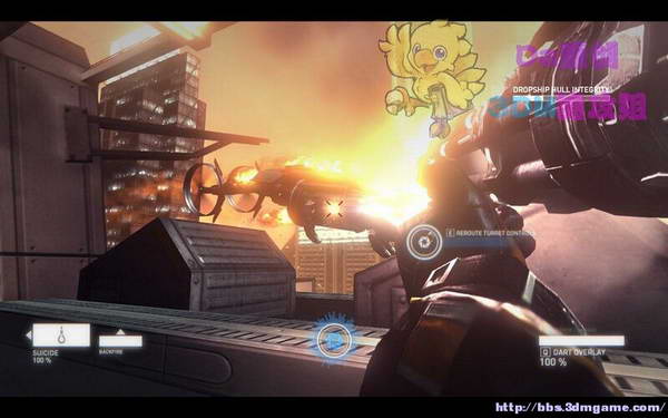 飞行摩托车过来时,要先清除摩托车先,再按住鼠标左键不断向直升机开火!