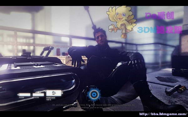 从飞船下落到一座建筑物的天台,进入附近的门,就界面就会提示出一个蓝色小图标