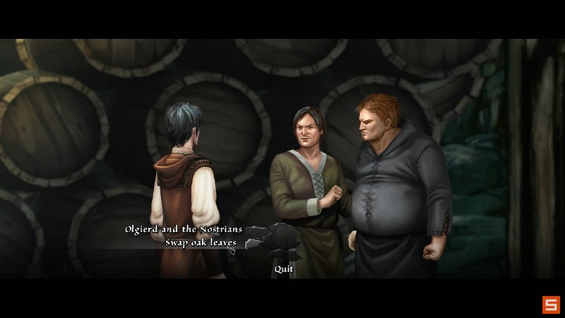 原来Geron正在进行一个名为收集OAK LEAF的挑战任务。而开幕的场景OLEIGRD和NOSTRAINS教训GERON的场景正是为了抢夺他手里持有的一个OAK LEAF
