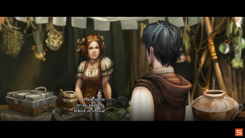 这里要选择PLUM SPIRIT,然后前往小屋的猪圈水槽将其放入迷倒全部的猪;从水槽里面取得最后一个OAR LEAF